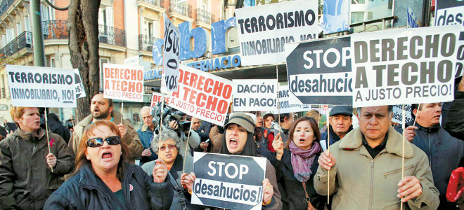 Οι εξώσεις χρεωμένων ιδιοκτητών ακινήτων έχουν καταστεί σύμβολο της οικονομικής κρίσης στην Ισπανία μετά την έκρηξη της φούσκας του 2008 στην Ισπανία, όπως και η εκθετική ανάπτυξη της ανεργίας. Οι εξώσεις προκάλεσαν ένα κύμα αγανάκτησης στη χώρα, που επιτάθηκε έπειτα από ένα κύμα αυτοκτονιών ανθρώπων που κινδύνευαν να μείνουν άστεγοι. Οργανώσεις πολιτών κινητοποιούνται για να εμποδίζουν τις εξώσεις.