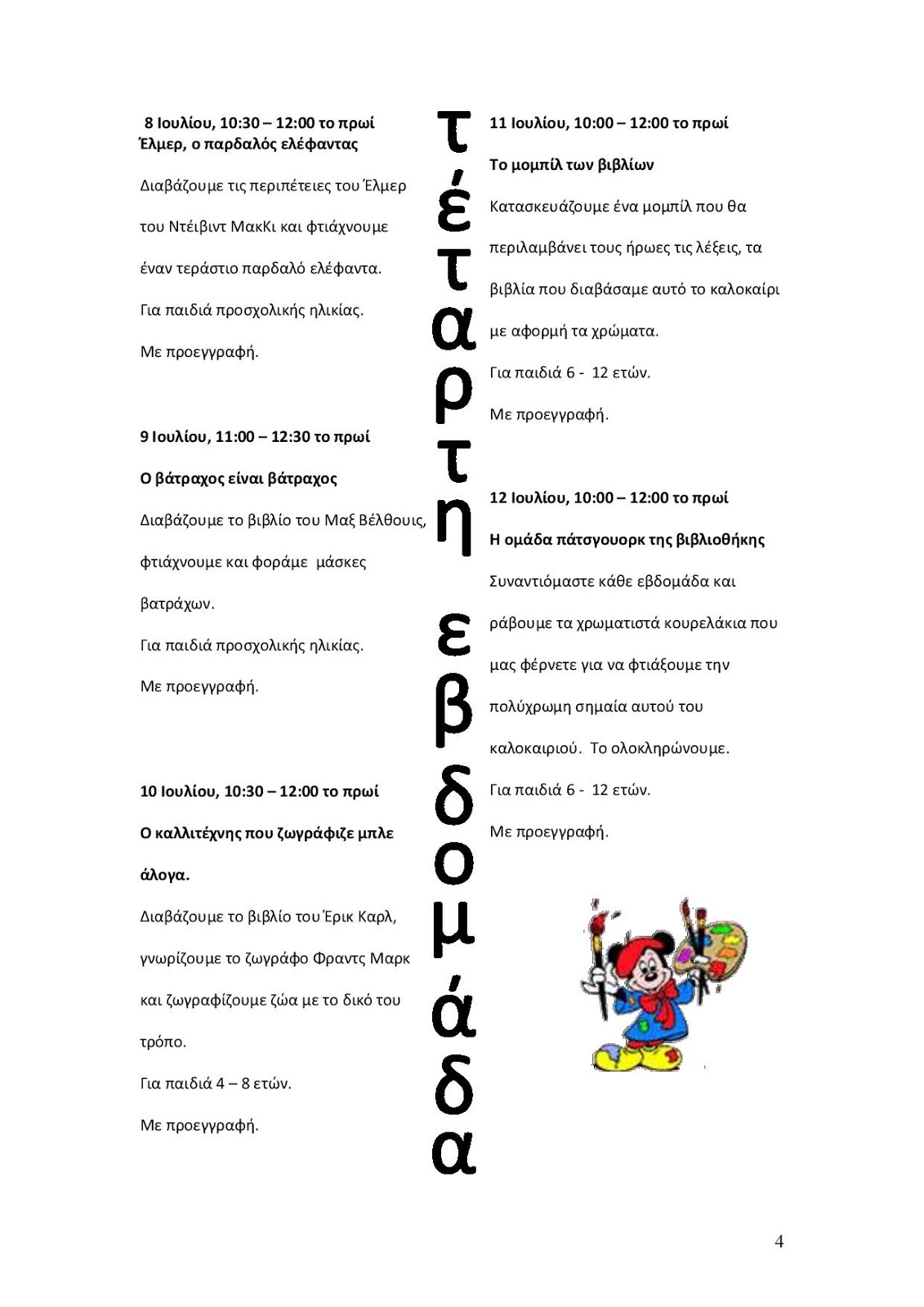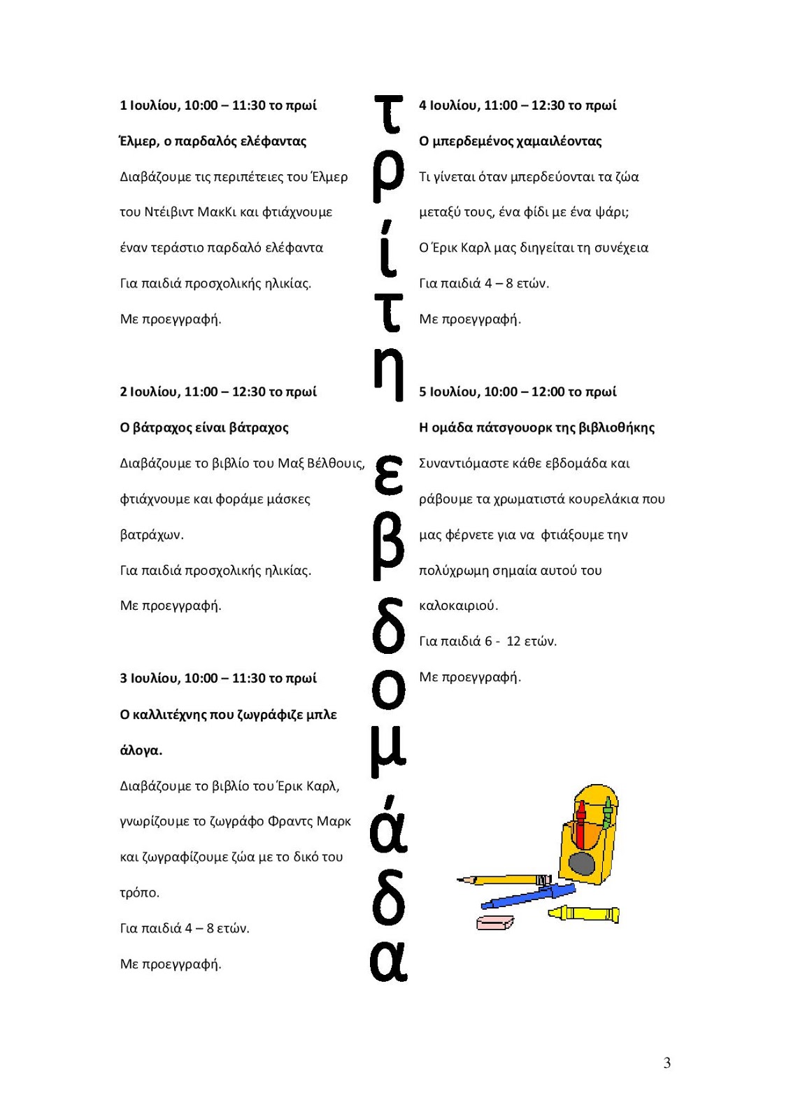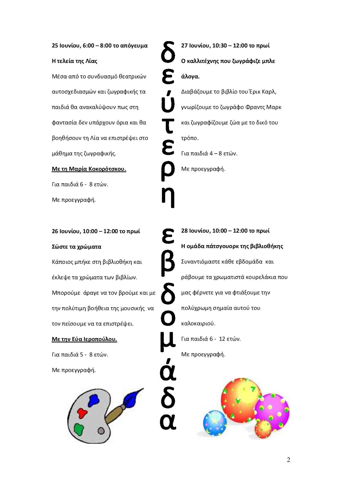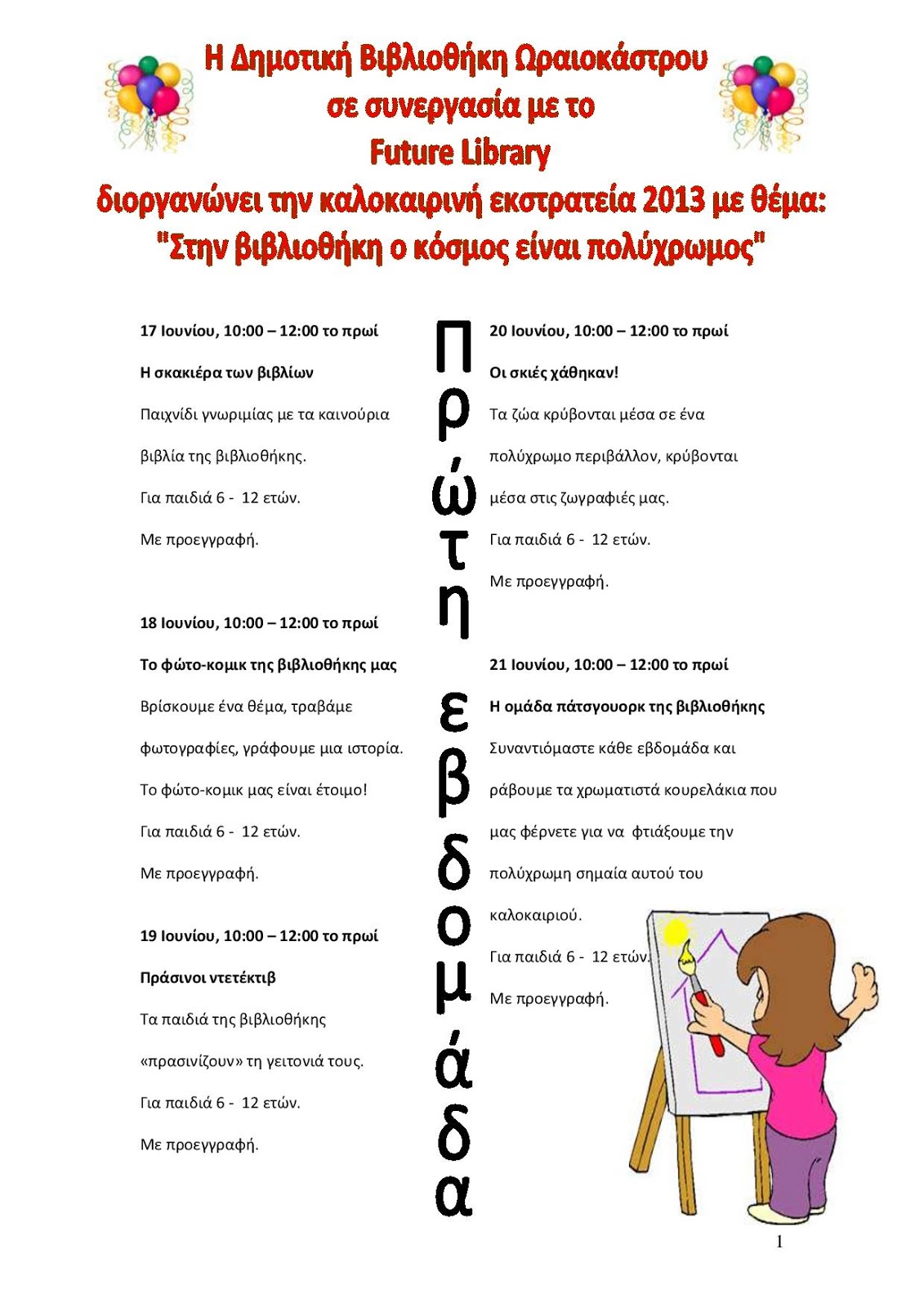 διοργανώνει την καλοκαιρινή εκστρατεία 2013 με θέμα: "Στη βιβλιοθήκη ο