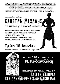 “Καπετάν Μιχάλης, το πάθος για την ελευθερία” στο Ανοικτό Θέατρο Ν. Ευκαρπίας την Τρίτη 18 Ιουνίου στις 20.30 μμ