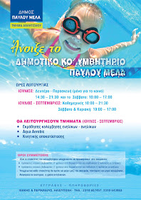 Τμήμα Αθλητισμού: Άνοιξε το Δημοτικό Κολυμβητήριο Παύλου Μελά