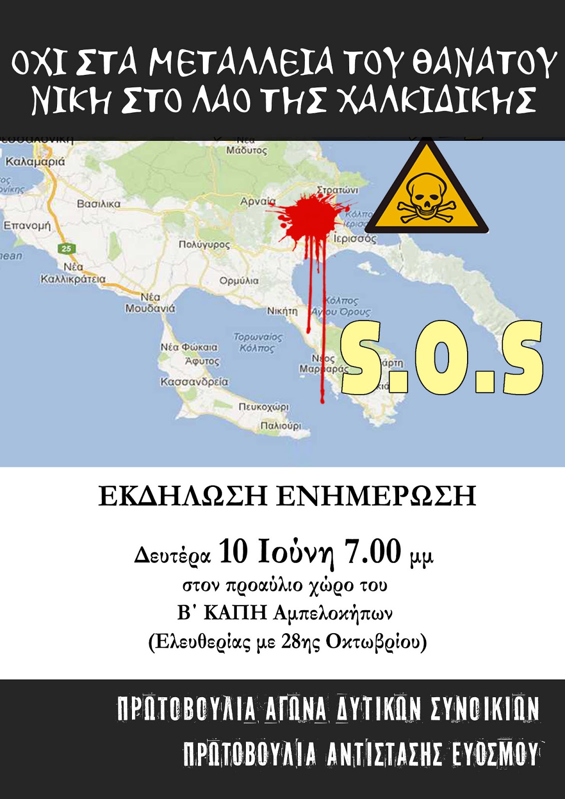 ΕΚΔΗΛΩΣΗ ΑΛΛΗΛΕΓΓΥΗΣ «για την ΧΑΛΚΙΔΙΚΗ και τις ΕΠΙΠΤΩΣΕΙΣ από την ΕΞΟΡΥΞΗ ΧΡΥΣΟΥ» Δευτέρα 10 Ιούνη 7.00 μμ στον προαύλιο χώρο του Β’ ΚΑΠΗ Αμπελοκήπων (Ελευθερίας με 28ης Οκτωβρίου- λεωφορ.34)