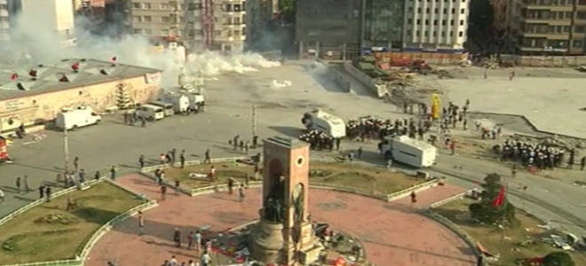 Η ειδική μονάδα καταστολής πλήθους της τουρκικής αστυνομίας, εισήλθε το πρωί της Δευτέρας στην πλατεία, σε μια προσπάθεια να διώξει τους διαδηλωτές και να τερματίσει ουσιαστικά τις διαμαρτυρίες, ωστόσο οι διαδηλωτές αρνήθηκαν να απομακρυνθούν, με αποτέλεσμα να ξεκινήσει σύρραξη.