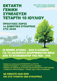 Έκτακτη Γενική Συνέλευση Δικτύου 50 Συλλόγων και Φορέων κατά του ΣΜΑ Ευκαρπίας - Τετάρτη 10 Ιουλίου στις 20.00 μμ