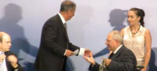 Εδωσαν στεφάνι ελιάς στον Σόιμπλε- Εκπληκτος παρακολουθεί ο Χατζηδάκης