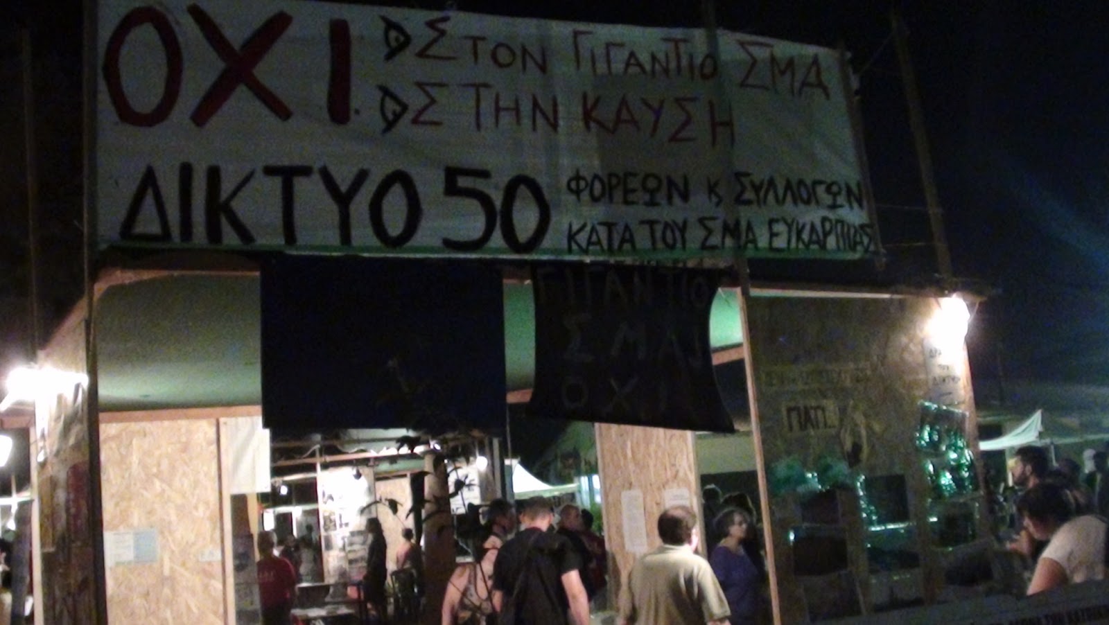 Είμασταν και εμείς εκεί με δικό μας στέκι (ΔΙΚΤΥΟ 50 κατά του ΣΜΑ Ευκαρπίας) μαζί με τα παιδιά από την κίνηση για την απόδοση των στρατοπέδων, για το το χρυσό στη Χαλικιδική, για το νερό, κλπ.
