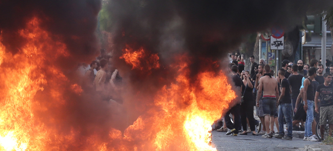Ομάδα νεαρών ατόμων μετά τν κηδεία του Θανάση επέστρεψε στο σημείο όπου σκοτώθηκε και έβαλε φωτιά σε κάδους.