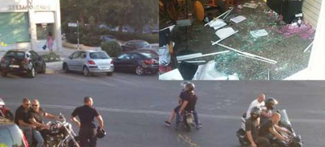 «Περίπου 30-40 μηχανάκια με δύο άτομα το καθένα (60-80 άτομα), φορώντας κράνη και μπλούζες της Xρυσής Aυγής, εξοπλισμένοι με καδρόνια και ξεφτιλίζοντας την ελληνική σημαία που κρατούσαν στα χέρια τους (είτε δεμένη στα καδρόνια τους), εμφανίστηκαν στην πλατεία και φώναζαν τα συνθήματά τους, πετώντας ταυτόχρονα διάφορα φυλλάδια.