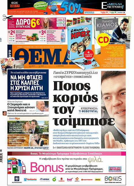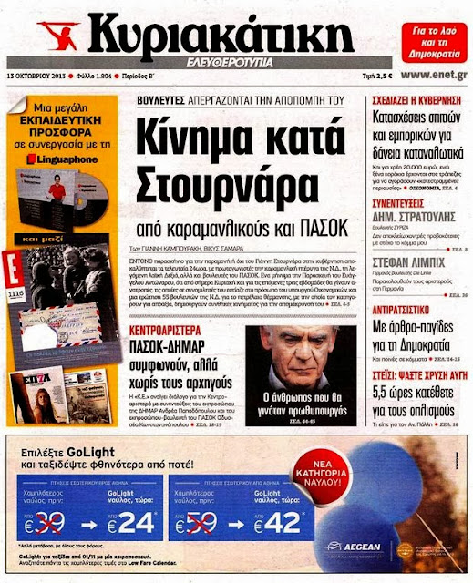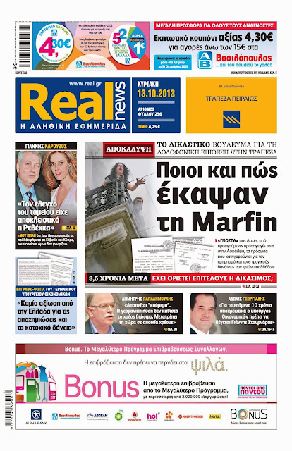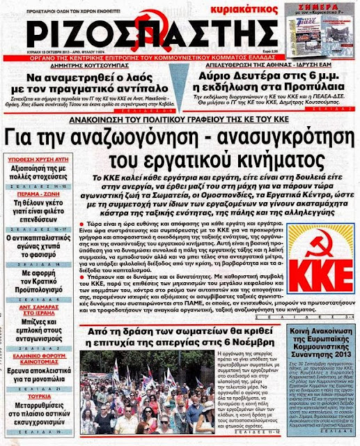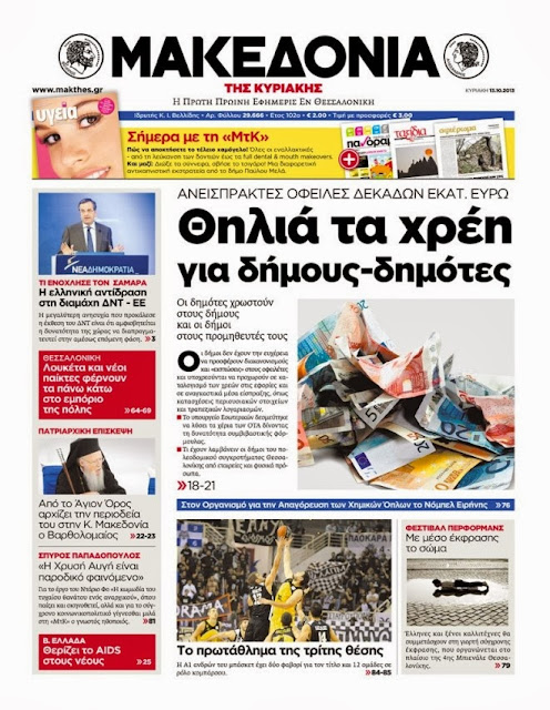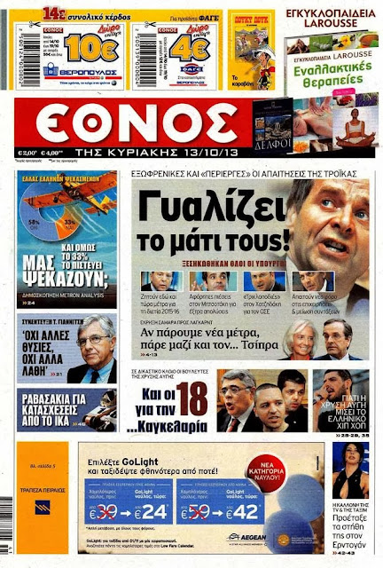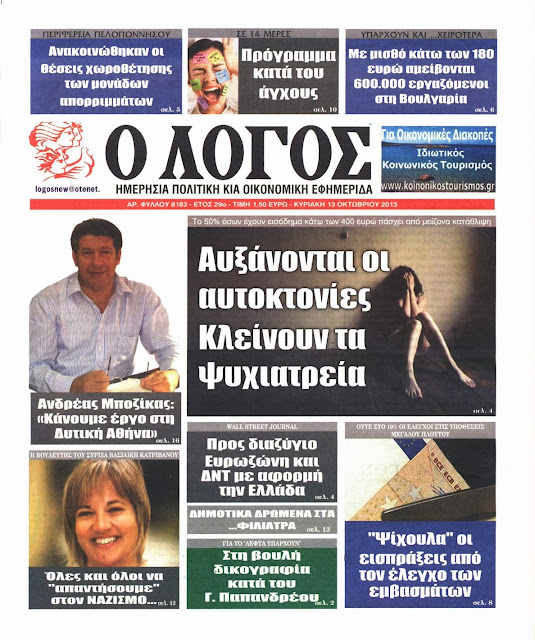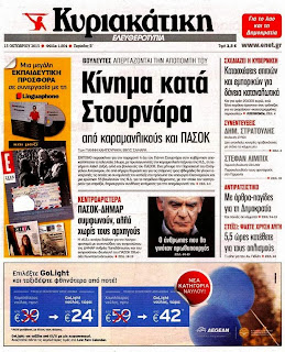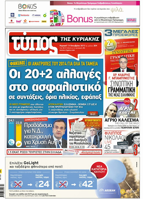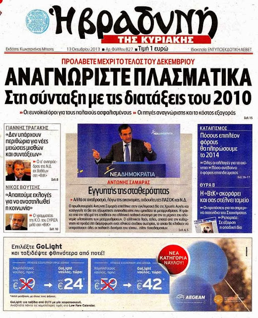 Δείτε τα πρωτοσέλιδα της Κυριακής 13 Οκτωβρίου 2013