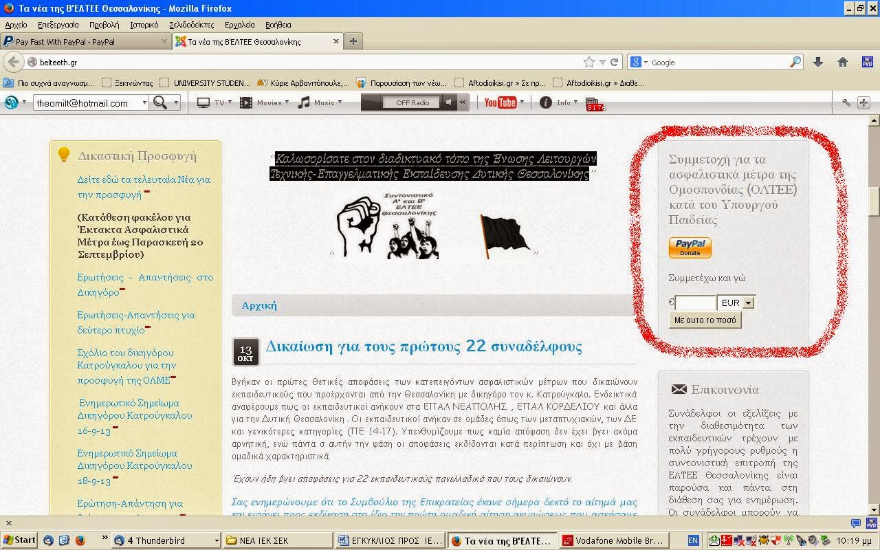 Η προσφυγή στο ΣτΕ θα οριστεί σύντομα δικάσιμη, κι επειδή η ΟΛΤΕΕ έχει αναλάβει το χρηματικό κόστος (το οποίο είναι της τάξεως των χιλιάδων ευρώ ) Β΄ΕΛΤΕΕΘ έχει αναρτήσει Link για την δωρεά σας μέσω paypal στο site μας όπως φαίνεται και στα επισυναπτόμενα . Αν θέλετε να συνδράμετε μπορείτε να υποστηρίξετε οικονομικά τον δικαστικό μας αγώνα, μιας και η προσφυγή στο ΣτΕ θα κοστίσει κάποιες χιλιάδες ευρώ.