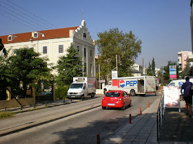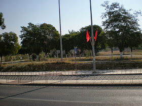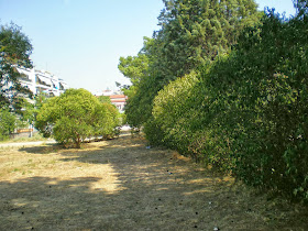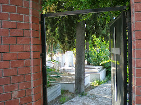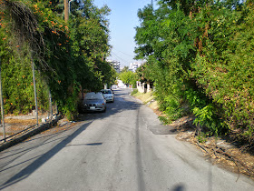 Η έξοδος από τα νεκροταφεία της Αγίας Παρασκευής μας οδηγεί πίσω από τα κτίρια του ΟΑΕΔ της οδού Λαγκαδά