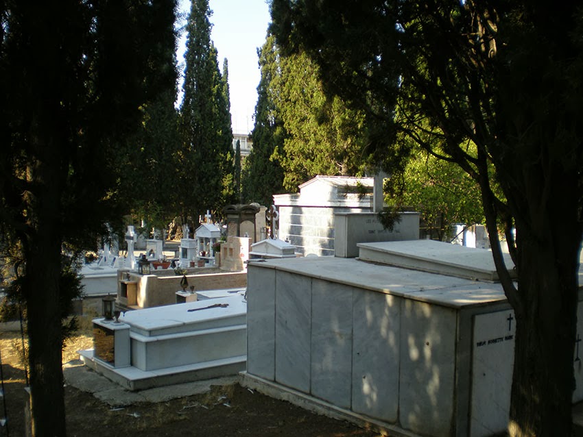 και στη διαδρομή μας αποκαλύπτονται τα, σχεδόν άγνωστα, Καθολικά Κοιμητήρια στο βάθος.