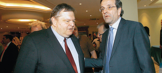 Σαμαράς και ο πρόεδρος του ΠΑΣΟΚ Ευάγγελος Βενιζέλος στη συνάντηση που