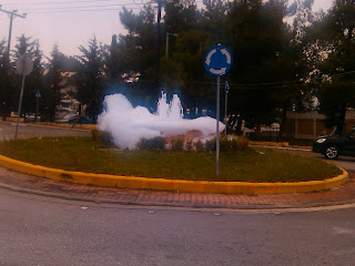 Άφρισε το συντριβανάκι στον κόμβο του ΟΑΕΔ στο Ωραιόκαστρο και προξένησε την απορία και την έκπληξη των περαστικών οδηγών. Είναι η δεύτερη ή τρίτη φορά που συμβαίνει κάτι τέτοιο. Μάλλον κάποιοι δεν ... βάζουν μυαλό.