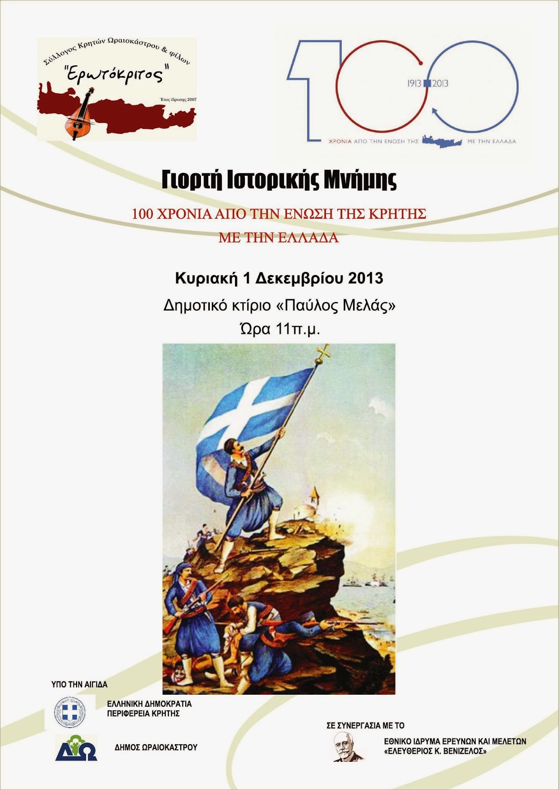 επετείου των Εκατό Χρόνων της Ένωσης της Κρήτης με την Ελλάδα, σας