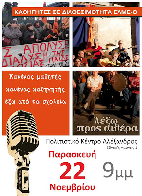 "λέξω προς αιθέρα" : Συναυλία των καθηγητών σε διαθεσιμότητα ΕΛΜΕ-Θ σήμερα στις 9.00 μμ στο Πολιτιστικό Κέντρο Αλέξανδρος