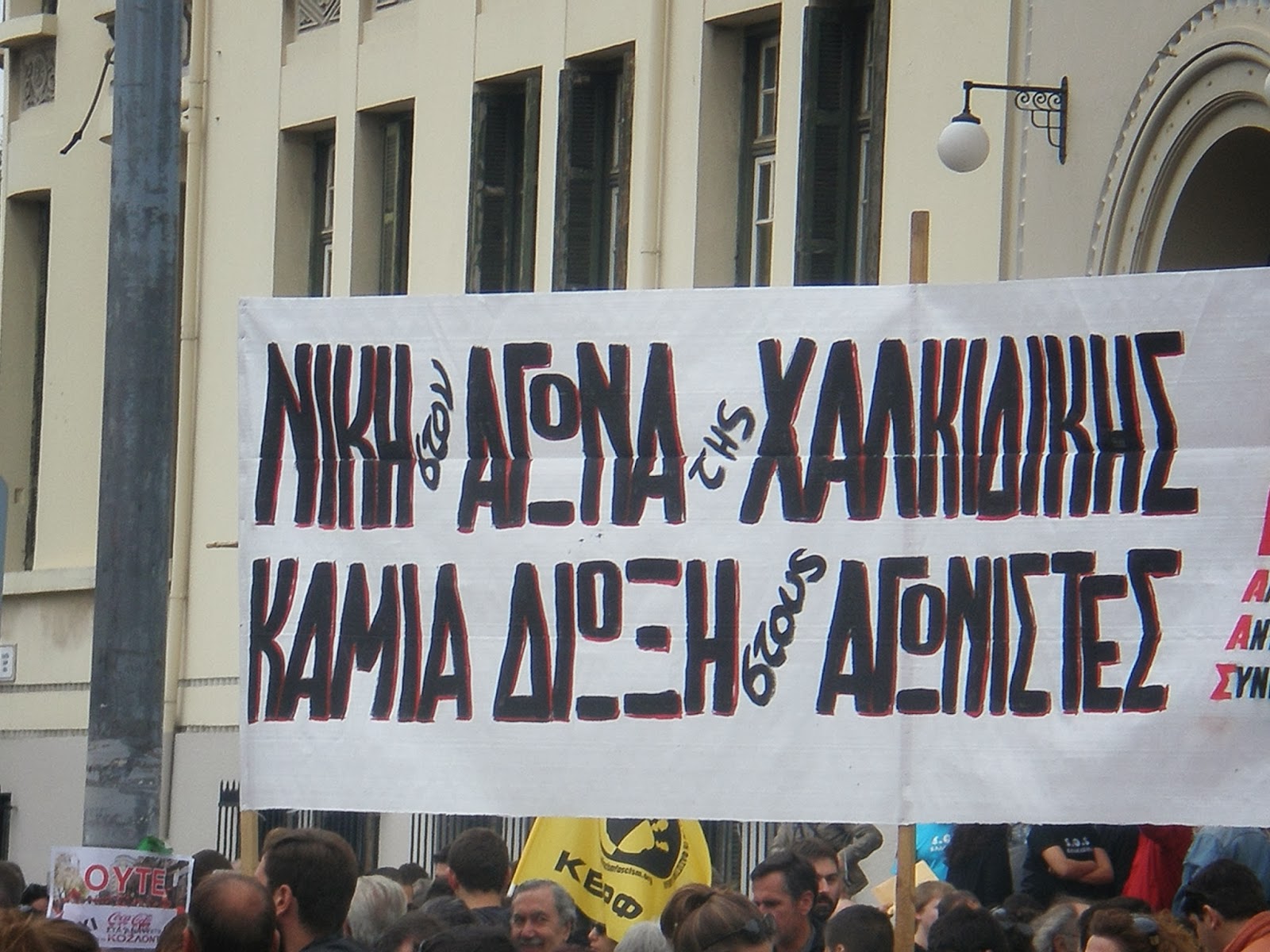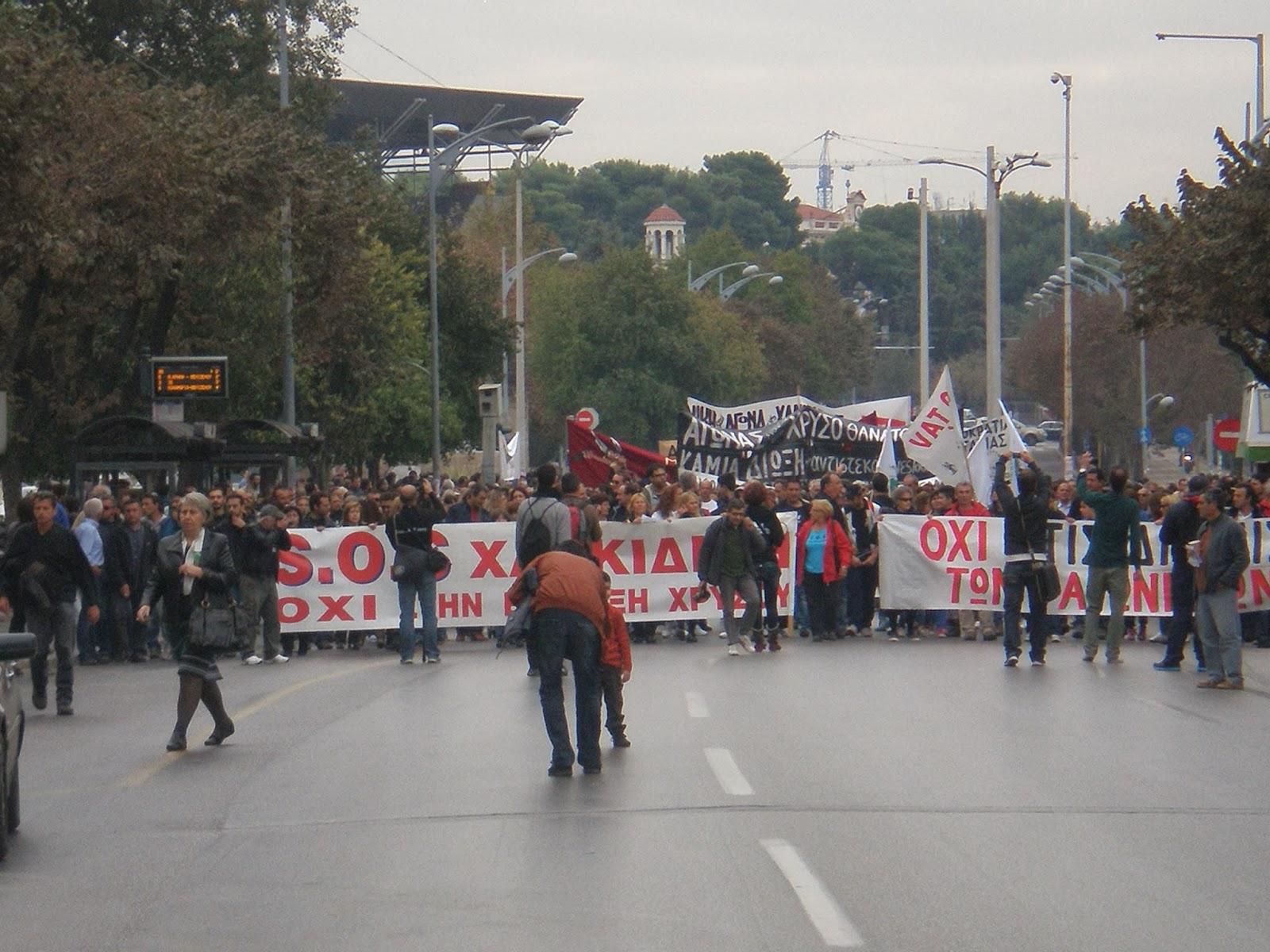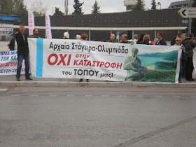 - διαδήλωσαν ενάντια στην λεηλασία της Χαλκιδικής που είναι είναι μέρος της γενικότερης εκποίησης δημόσιας περιουσίας και φυσικών πόρων. Η καταστροφή του περιβάλλοντος είναι μέρος της θυσίας της φύσης και της ποιότητας ζωής στο βωμό επιχειρηματικών συμφερόντων.