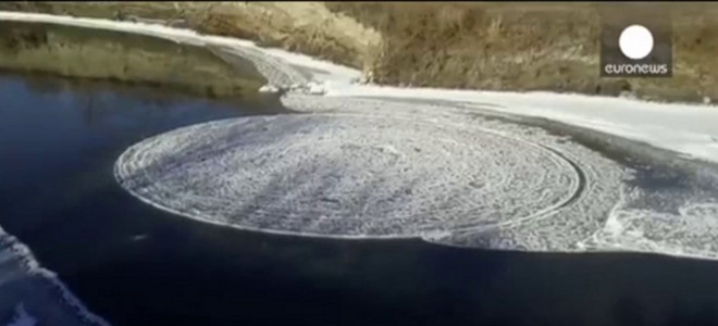 Γιγαντιαίος δίσκος πάγου «μυστήριο» στις όχθες ποταμού -Στροβιλίζεται σαν να είναι σε... πικάπ [video]