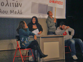δηλ της Ευκαρπίας, της Πολίχνης και της Σταυρούπουλης και ακολούθησε ένα σατυρικό στιγμιότυπο για τις υπηρεσίες των δήμων και το βαθμό