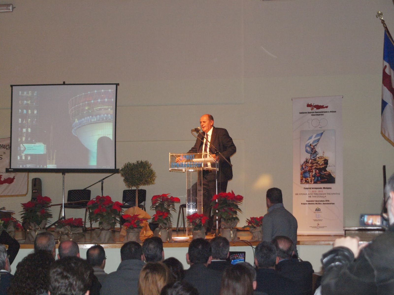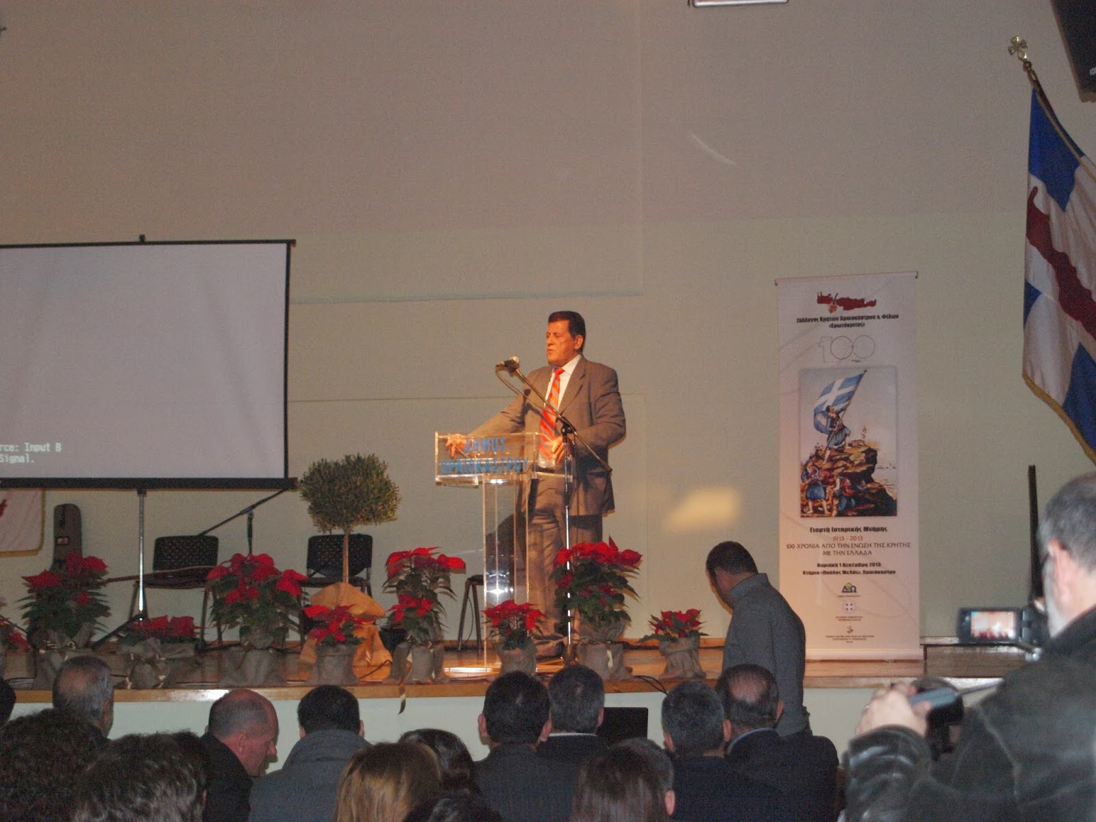 Μέσα σε ένα πανηγυρικό κλίμα και με την δέουσα επισημότητα πραγματοποιήθηκε η εκδήλωση που διοργάνωσε ο Σύλλογος Κρητών Ωραιοκάστρου, σε συνεργασία με το Ίδρυμα Ερευνών και Μελετών «Ελευθέριος Κ. Βενιζέλος» και υπό την αιγίδα της Περιφέρειας Κρήτης και του δήμου Ωραιοκάστρου στα πλαίσια των εορτασμών της επετείου των Εκατό Χρόνων της Ένωσης της Κρήτης με την Ελλάδα, στην αίθουσα εκδηλώσεων του κτηρίου «Παύλος Μελάς» στο Παλαιόκαστρο.