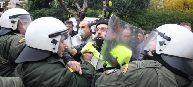 τον επικεφαλής των ΜΑΤ στο σημείο έσπευσε και άρπαξε τον αστυνομικό από