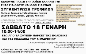 Συγκέντρωση τροφίμων διοργανώνει αύριο Σάββατο 18 Γενάρη η Λαϊκή Επιτροπή Πολίχνης απο τις 10.00-14.00