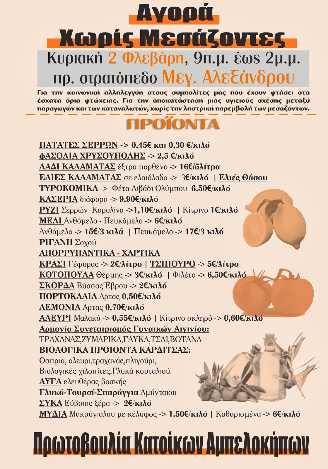 Πρωτοβουλία Κατοίκων Αμπελοκήπων: Αγορά χωρίς Μεσάζοντες, Κυριακή 2 Φλεβάρη, 9 πμ -2 μμ. πρ. στρατόπεδο Μεγ. Αλεξάνδρου