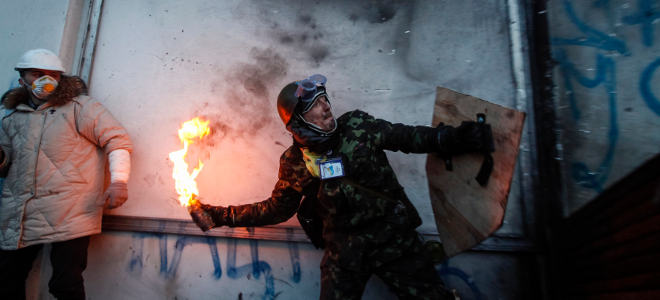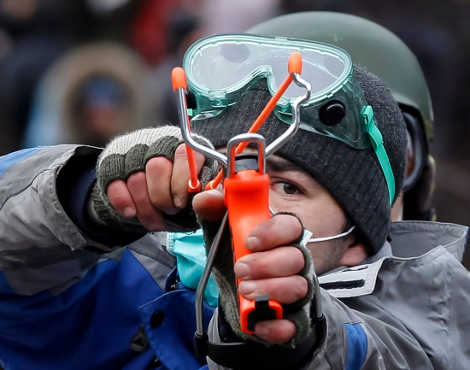 Με σφεντόνες, μολότοφ και καταπέλτες στη μάχη με τις δυνάμεις ασφαλείας οι Ουκρανοί διαδηλωτές -2η μέρα συγκρούσεων [φώτο]