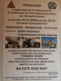Εκδήλωση της ΟΜΑΚ - Εθελοντές Ωραιοκάστρου & Τροχαίας Θεσσαλονίκης με θέμα: "Οδική Ασφάλεια - Συμπεριφορά Πεζών - Οδηγών"