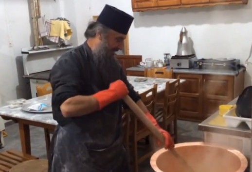 Η κάμερα του Πρακτορείου Εκκλησιαστικών Ειδήσεων βρέθηκε στην Ιερά Μονή Αγίων Αναργύρων Μελλισοτόπου Καστοριάς και κατέγραψε την διαδικασία παρασκευής λουκουμιών από τον Ηγούμενο της Μονής αρχιμανδρίτη Ευλόγιο Παπαδημητρίου.
