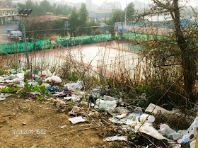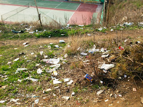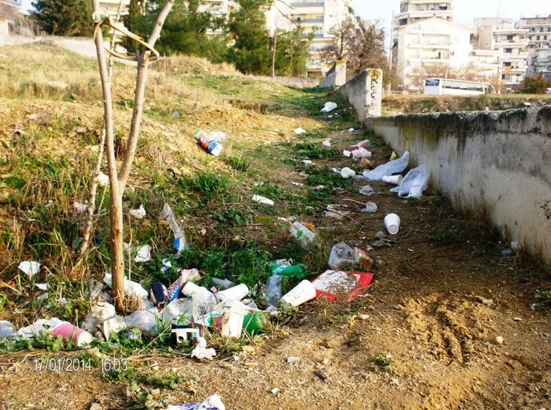 Όπως μας ενημερώνει ο αναγνώστης "...από τις 21/1/14 που έστειλα mails και στους δύο δήμους, κανείς δεν έχει κάνει τίποτα απολύτως(!!) και τα σκουπίδια συνεχίζουν να συσσωρεύονται. Ο χώρος είναι σημείο συγκέντρωσης ζωόφιλων κάθε απόγευμα και βρίσκεται πάνω από γήπεδο τέννις (φαίνεται καθαρά στις φωτογραφίες) και γενικά χώρους άθλησης. Επίσης είναι και σημείο διέλευσης μαθητών προς τα σχολεία τους. Τα σκουπίδια είναι ό,τι αφήνουν οι "ζωόφιλοι" φεύγοντας και περισσεύει σε αυτούς και στα σκυλιά τους.