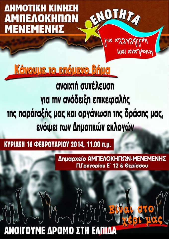 δήμαρχο για τον Δήμο Αμπελοκήπων-Μενεμένης.