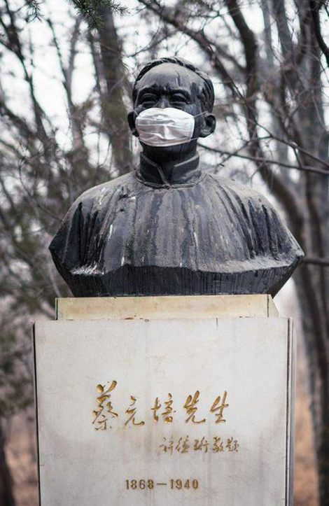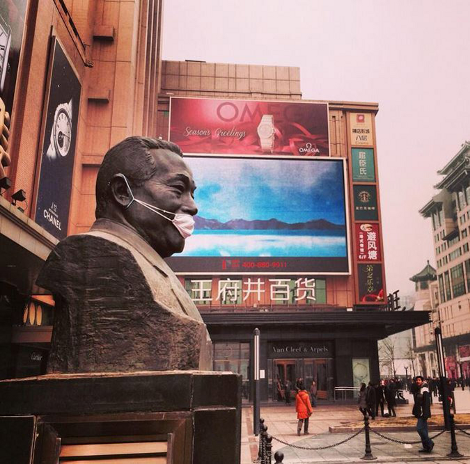 Σε ένδειξη διαμαρτυρίας για την αδιαφορία των αρχών, φοιτήτης του Πανεπιστημίου του Πεκίνου φόρεσε μάσκες σε αγάλματα στους δρόμους της πόλης.
