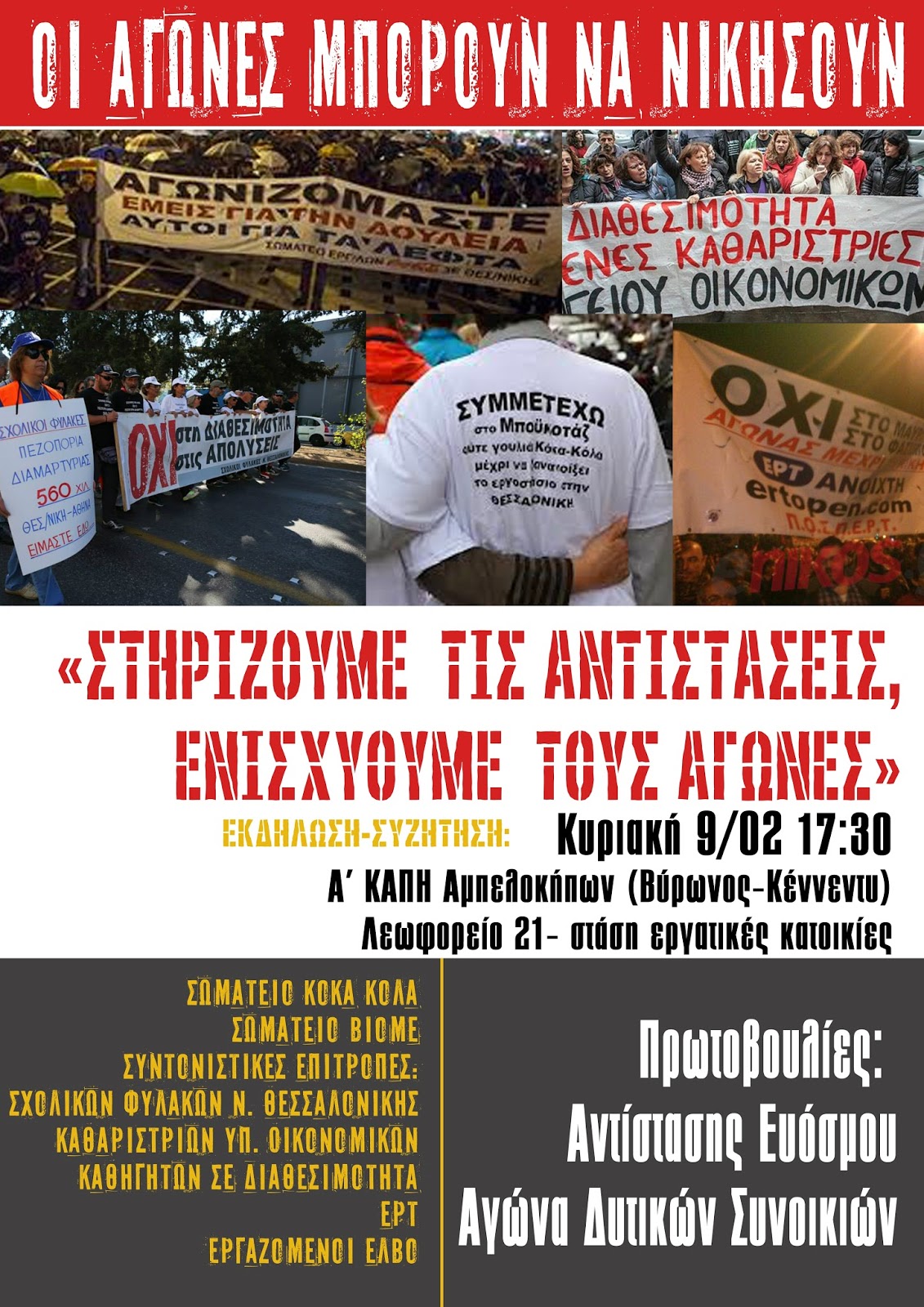των αγώνων των εργαζόμενων στη ΚΟΚΑ-ΚΟΛΑ, των διαθέσιμων στην ΕΡΤ, των