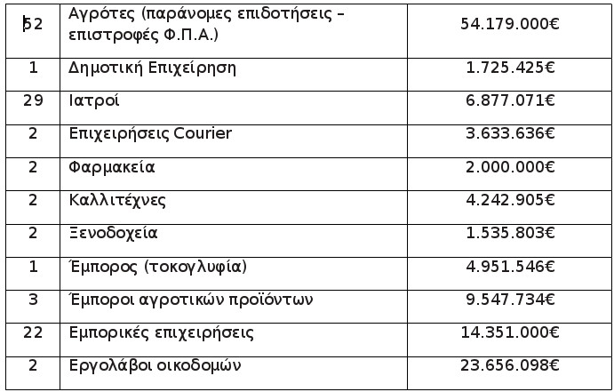 Εργολάβοι κροίσοι και αγρότες εκατομμυριούχοι -Η λίστα της φοροδιαφυγής