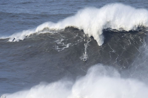 Το κύμα που σηκώθηκε στη Ναζαρέ της Πορτογαλίας, υπολογίζεται ότι ξεπερνούσε σε ύψος τα 24 μέτρα (24,3 για την ακρίβεια). Το σημερινό ρεκόρ είναι στα 23,9 μέτρα και κάτοχός του είναι αυτός που βοήθησε τον Κότον να «ανέβει» στο τρομακτικά γιγάντιο κύμα για να αρχίσει την απίστευτη κούρσα με τη σανίδα του -ο σέρφερ Γκάρετ Μακναμάρα (φαίνεται στις φωτογραφίες να παρακολουθεί πάνω σε τζετ σκι τον άθλο του φίλου και «συναδέλφου» του).