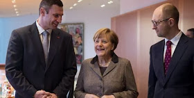 Μέρκελ με τον Κλίτσκο (εκ δεξιών της), αλλά και τον Γιατσένιουκ (εξ αριστερών