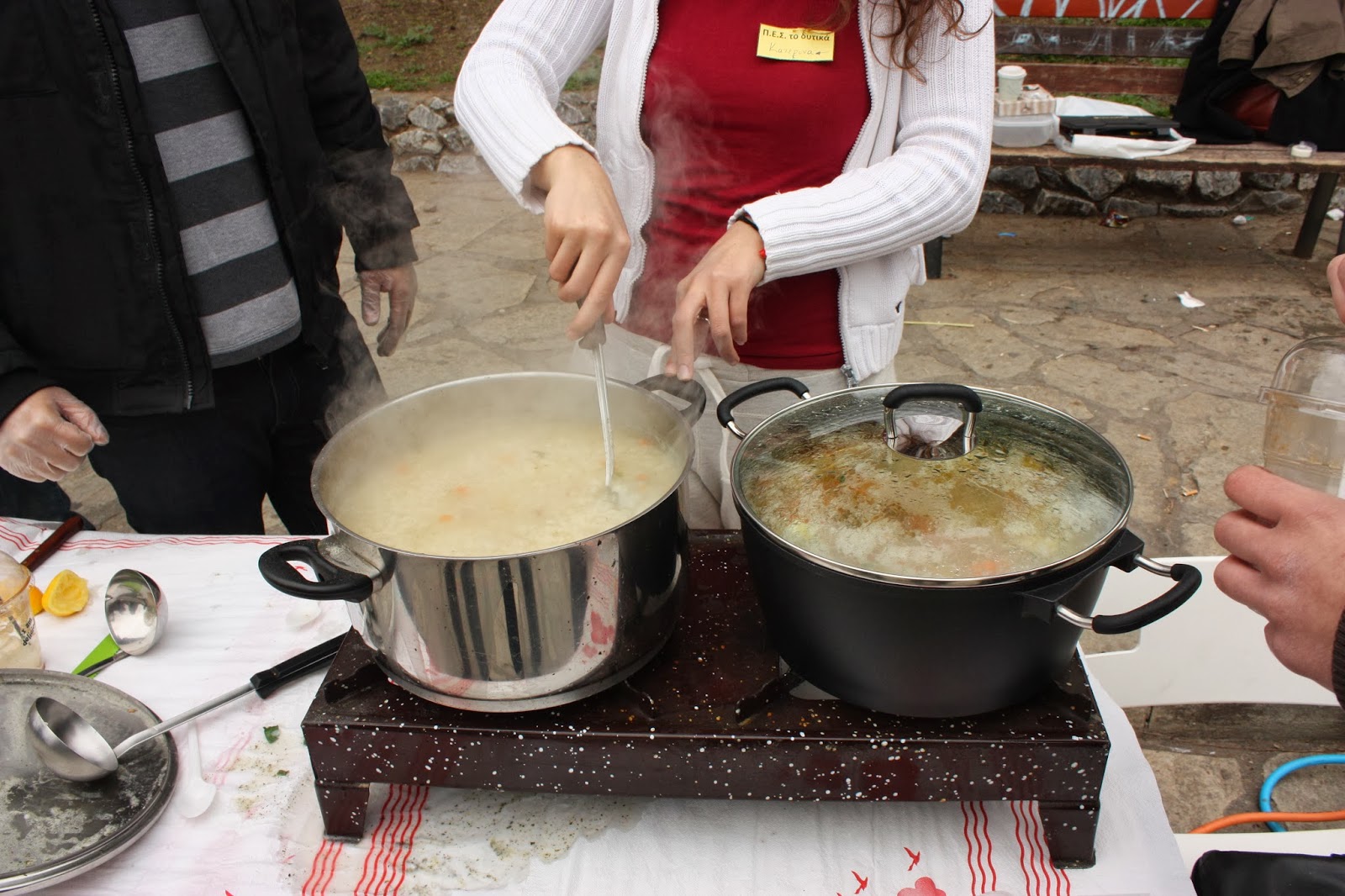 Τα μέλη της ομάδας μαγείρεψαν χορτόσουπα και τραχανά για τους περαστικούς