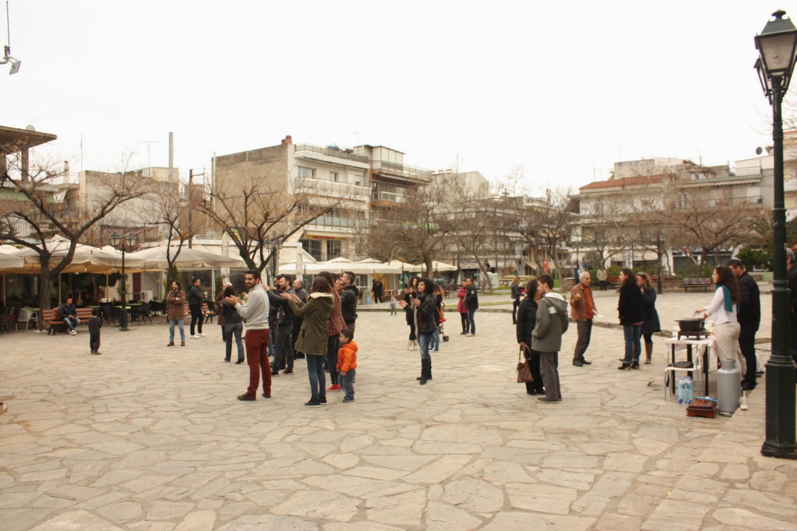 της πλατείας, τους θαμώνες των γύρω μαγαζιών και τους συμπολίτες τους που