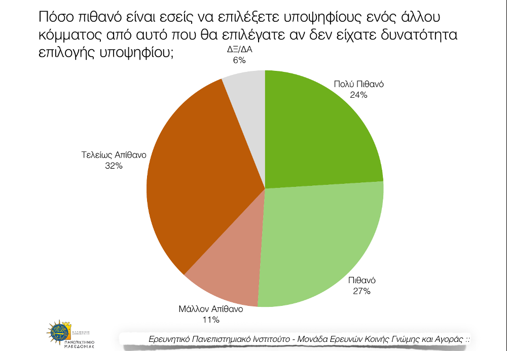 Μια νέα έρευνα της Μονάδας Ερευνών Κοινής Γνώμης του Ερευνητικού Πανεπιστημιακού Ινστιτούτου του Πανεπιστημίου Μακεδονίας έρχεται να ταράξει τα πολιτικά νερά, έναν ακριβώς μήνα πριν από τις επερχόμενες ευρωεκλογές.