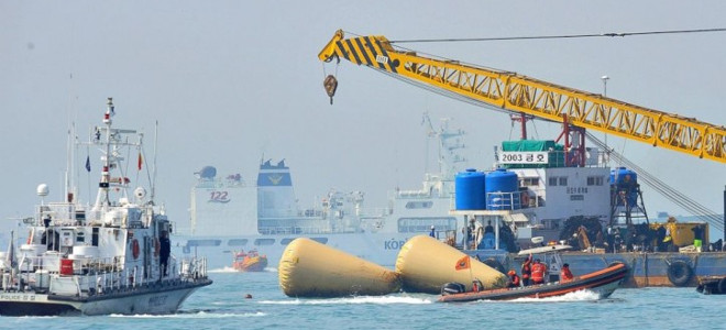 Τέσσερις μεγάλοι ναυτικοί γερανοί, συμπεριλαμβανομένου και ενός μηχανισμού ανέλκυσης της Samsung με δυνατότητα ανέλκυσης 8.000 τόνων, έχουν τοποθετηθεί στο σημείο όπου βυθίστηκε το Sewol και ειδικοί επισημαίνουν ότι με τη χρήση μίας πλωτής πλατφόρμας θα βοηθήσει την ανέλκυση και τη μετακίνηση του πλοίου.