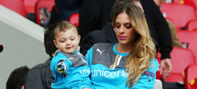 Ο μικρός Εντσο και η Μπελίσε ήταν μαζί της, με την απαραίτητη αμφίεση βέβαια, αφού φορούσαν και τα πιτσιρίκια τη φανέλα του Ολυμπιακού, για να χαρούν και εκείνα την επιτυχία του μπαμπά τους και το 41ο πρωτάθλημα του Ολυμπιακού.