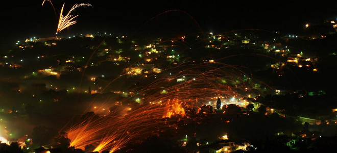 Σε ρεπορτάζ του το βρετανικό δίκτυο αναφέρεται στη «μάχη των πυροτεχνημάτων» στο νησί, όπως ονομάζει το ρουκετοπόλεμο με στόχο της κάθε πλευράς να χτυπήσει το καμπαναριό της άλλης εκκλησίας. Οπως σημειώνει όμως το ρεπορτάζ, ακόμη και σε αυτό το έθιμο είναι εμφανή τα σημάδια της κρίσης, αφού κάποιοι από τους μετέχοντες δηλώνουν ότι φέτος έφτιαξαν λιγότερες ρουκέτες.
