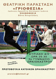 Η Πρωτοβουλία Κατοίκων Ωραιοκάστρου σας κάλει στην θεατρική παράσταση: " ΓΡΙΟΘΕΣΙΑ", Κυριακή 4/5/2014, 20.30 μμ , 2ο Γυμνάσιο Ωραιοκάστρου