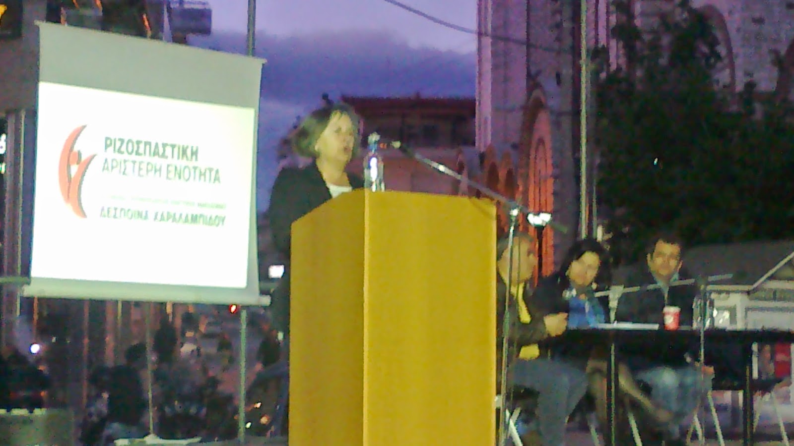 Χαραλαμπίδου μιλώντας το βράδυ της Δευτέρας 5 Μαΐου στην κεντρική πλατεία του