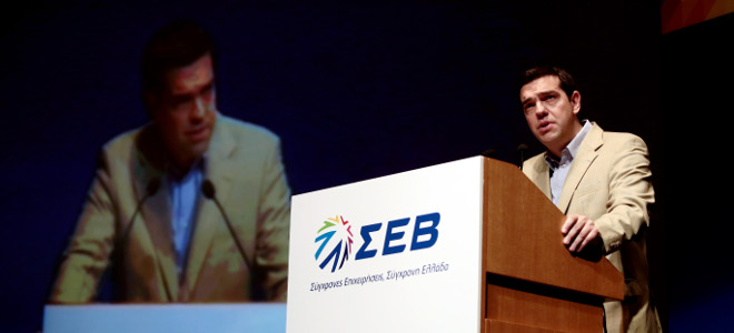 Ο Αλέξης Τσίπρας κράτησε υψηλούς τόνους και στην ομιλία του στη Γενική Συνελευση του ΣΕΒ, όπως είχε κάνει και μετά τη συνάντησή του με τον Πρόεδρο της Δημοκρατίας Κάρολο Παπούλια.