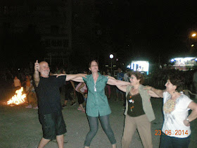 Παράλληλα, στην πλατεία του χωριού στήνεται μια μεγάλη φωτιά πάνω από