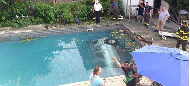 Την ώρα ακριβώς που το τζιπ προσγειωνόταν στην πισίνα ένας από τους δύο ενοίκους των κατοικιών έκανε τη βουτιά του, με αποτέλεσμα με το που έβγαλε το κεφάλι του από το νερό, να μην μπορεί να πιστέψει το τι είχε συμβεί. Ούτε φυσικά το πώς γλίτωσε.