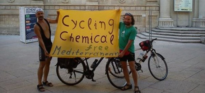 Θεσσαλονίκη:Δύο αποφασισμένοι Ελληνες γυρίζουν όλη τη Μεσόγειο με ποδήλατα για να διαμαρτυρηθούν για τα χημικά