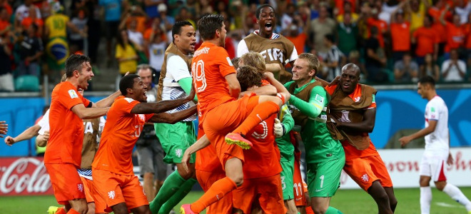 Ολλανδία: Σίλενσεν (120' Κρουλ), Φλααρ, Ντε Φρέι, Μάρτινς Ίντι (105' Γιαν Κλάας Χούντελαρ), Μπλιντ, Φαν Πέρσι, Σνάιντερ, Ρόμπεν, Κάουτ, Βαϊνάλντουμ, Ντεπάι (76' Λενς)