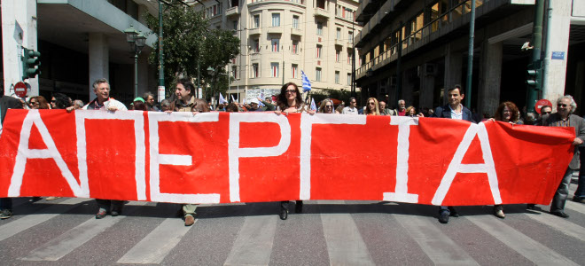 «Η κυβέρνηση ΝΔ-ΠΑΣΟΚ, προκειμένου να τσακίσει τις λαϊκές αντιστάσεις στις βάρβαρες μνημονιακές πολιτικές της και για να επιβάλλει στο λαό μας προς όφελος των κερδών της εγχώριας οικονομικής ολιγαρχίας και των ξένων "επενδυτών" μισθούς Κίνας και εργασιακές σχέσεις Ουγκάντας, συνεχίζει τον αυταρχικό κατήφορό της που δεν έχει τέλος, βάζοντας σε διακινδύνευση πλέον και την ίδια τη δημοκρατία στη χώρα μας.